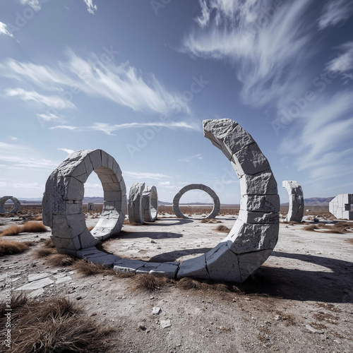 Fototapeta premium **Mystical Stone Circles in a Desert Landscape**