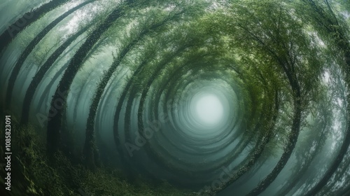 Obraz premium Mystical swirling trees in a foggy forest tunnel
