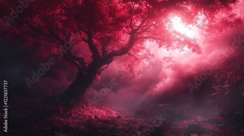 © thanawat, Obraz premium Mystical tree in enchanted forest fantasy landscape surreal environment dreamlike viewpoint
