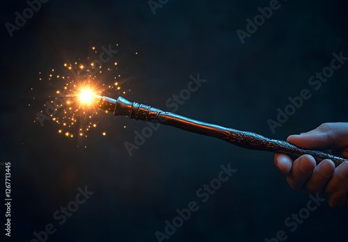 © Prasanth, Fototapeta premium Mystical wand on black, Miracle magic stick, Wizard's tool on dark