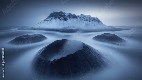 Naklejka premium Mystical Winter Island with Volcanic Craters