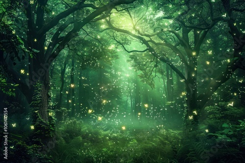 © Rawpixel.com, Obraz premium Mythical forest fireflies firefly green.