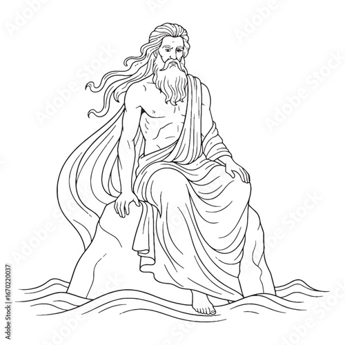 Obraz premium Mythical Shapeshifter Nereus Line Art – Greek Sea God Vector Outline Drawing...
