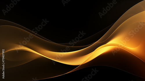 © FlyStun, Fototapeta premium Néon effet flou, vague en mouvement, doré, or sur fond noir. Pour conception et création graphique, bannière.