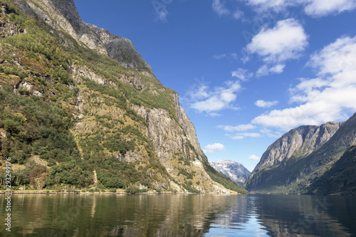 Fototapeta premium Nærøyfjord bei Gudvangen in Norwegen, Weltnaturerbe Westnorwegische Fjorde.