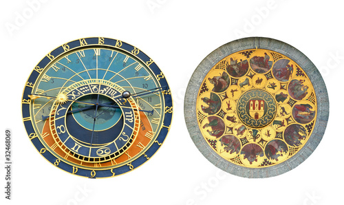 © VitalyTitov, Obraz premium Na białym tle Praski Zegar Astronomiczny, Ratusz Staromiejski