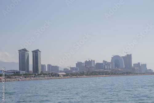 © Khatuna, Fototapeta premium Nabrzeże miasta, widok z morza. letnia masa turystyczna, Morze Czarne