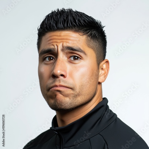 Obraz premium Nachdenklicher Mann mit ernster Miene in sportlicher Kleidung