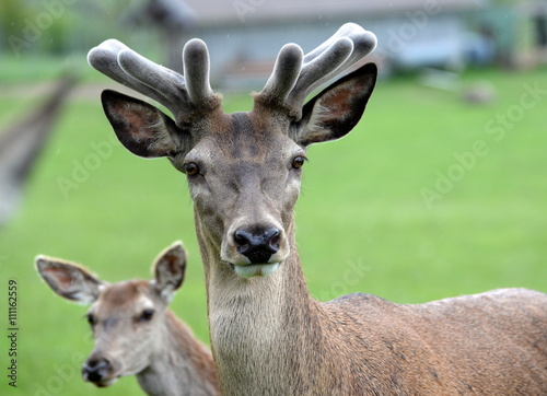 Obraz premium Nachwuchs, Rothirsch mit nachwachsendem Geweih