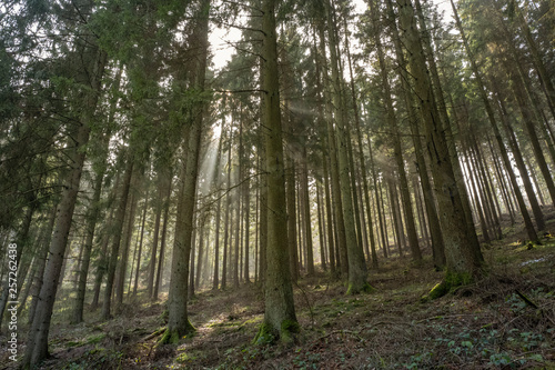 Fototapeta premium Nadelwald von Sonne durchflutet