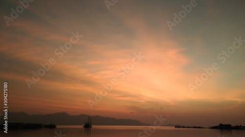 Naklejka premium Nadmorskie niebo po zachodzie słońca, błyszczące niebo