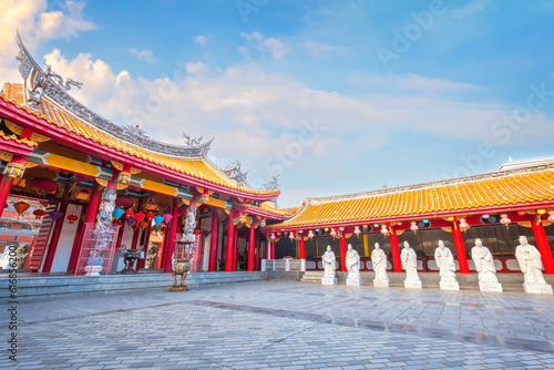Fototapeta premium Nagasaki, Japan - Nov 28 2022: Confucius Shrine (Koshi-byo) built in 1893 by Nagasaki's Chinese community dedicated to the revered Chinese philosopher Confucius in Japan