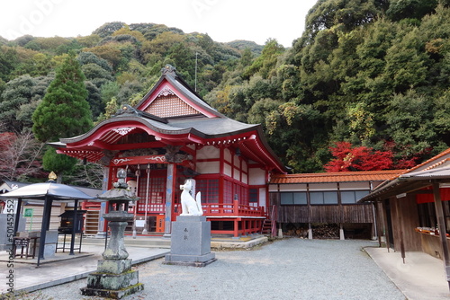 Naklejka premium Nagato-toyokawa-inari-jinjya Shrine and its autumn leaves in the precincts of Tainei-ji Temple at Fukawayumoto in Nagato City in Yamaguchi Prefecture in Japan 日本の山口県長門市深川湯本の大寧寺境内の中にある長門豊川稲荷神社