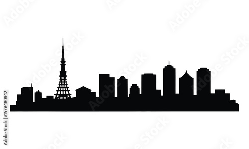 © MdAkram, Naklejka premium Nagoya City Skyline Silhouette, Vector, Illustration, Line Art, Icon, Logo, White Background.