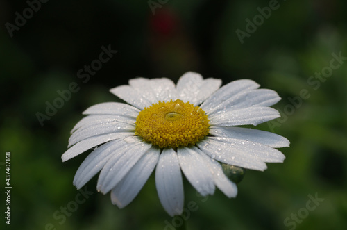 Obraz premium nahaufnahme der weißen blüte einer margerite mit regentropfen