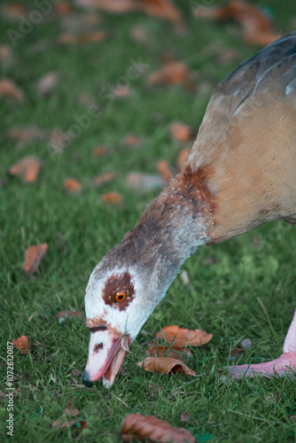 © Hendrik, Fototapeta premium Nahaufnahme einer Nilgans auf einer Wiese