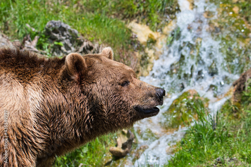 © Stefan, Obraz premium Nahaufnahme eines Braunbären mit einem Wasserfall im Hintergrund