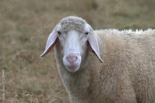 © tinymano, Fototapeta premium Nahaufnahme Schaf das in die Kamera blickt