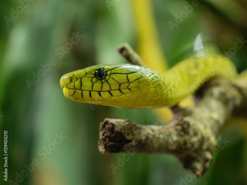 Naklejka premium Nahaufnahme seitlich einer grüne Mamba