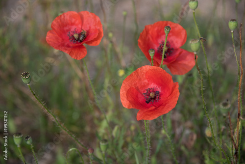 © Nicole, Obraz premium Nahaufnahme von roten Mohnblumen in der Naur