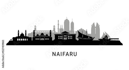 © godsfavoritearts, Naklejka premium Naifaru Skyline Vector Silhouette.