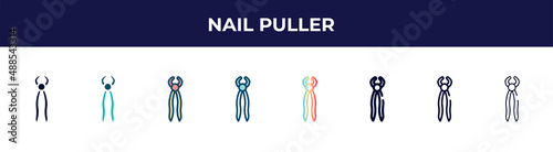 Fototapeta premium nail puller icon in 8 styles. line, filled, glyph, thin outline, colorful, stroke and gradient styles, nail puller vector sign. symbol, logo illustration. different style icons set.