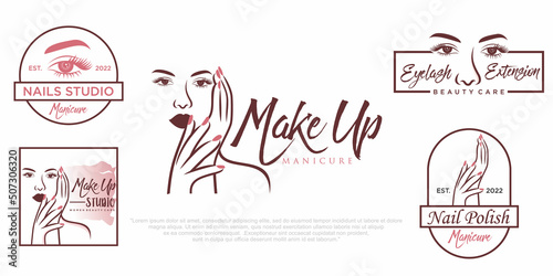 Fototapeta premium Nails art salon vector logo.Illustration of woman hand with elegant,...