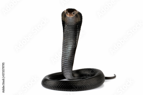 © kuritafsheen, Fototapeta premium Naja sputatrix snake closeup in a defensive position with isolated background