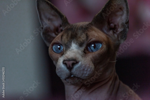 Obraz premium Naked beautiful cat indoor in dark room