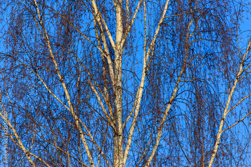 Fototapeta premium Naked birch in winter against the background of blue sky