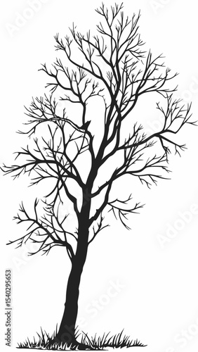 © revengestudio, Obraz premium Naked Tree silhouette on white backgrounds. Hand drawn isolated illustrations