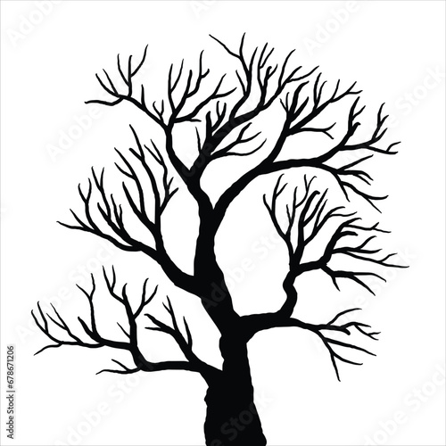 © Aldrvnd, Obraz premium Naked tree silhouettes Hand drawn. Black Branch Tree. Hand drawn tree branches. old dry branch fallen from tree isolated on white background.