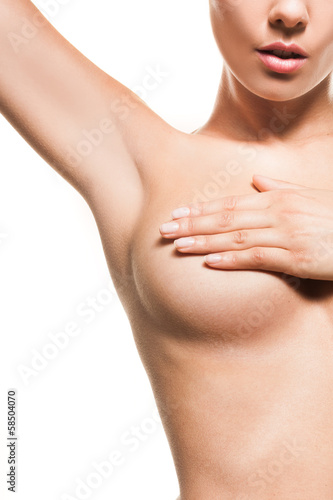 © stryjek, Fototapeta premium Naked woman checking fro breast cancer