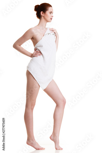 © anetlanda, Naklejka premium Naked woman in towel after bath