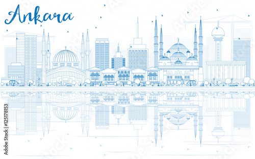 Naklejka premium Nakreśl panoramę Ankary z niebieskimi budynkami i odbiciami.
