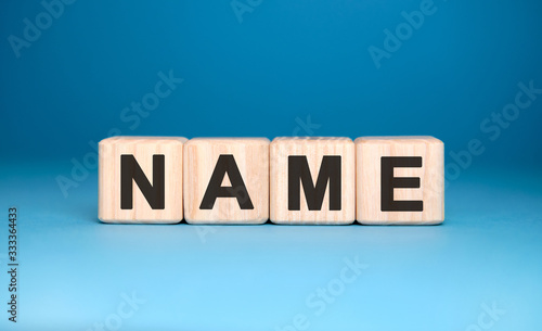 Fototapeta premium NAME - text on wooden blocks, concept, blue background