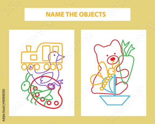© Svetlana, Obraz premium Name the object game. Educational game for attention. Printable sheet.
