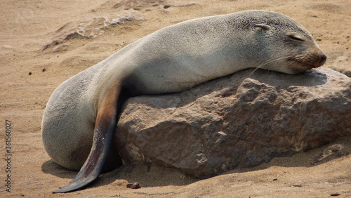 Obraz premium Namibia, Cape Cross Seal Reserve, Sea lion sleeps lying on rock