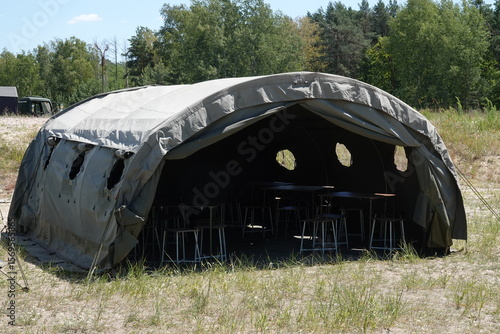 Fototapeta premium Namioty wojskowe na poligonie podczas ćwiczeń