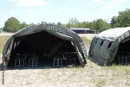 © tomo81, Obraz premium Namioty wojskowe na poligonie podczas ćwiczeń
