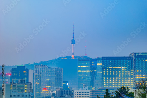 Fototapeta premium Namsan Seoul Tower building Seoul cityscape taken at dawn