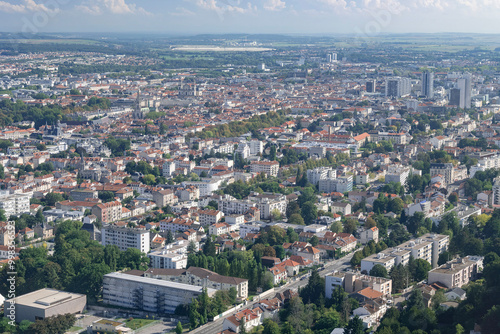 Naklejka premium Nancy, France - September 21th 2024 : View on the Nancy metropolis seen from the 30th floor of the Panoramic Tower.