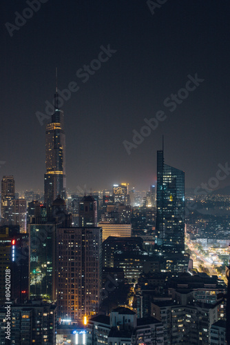 © 江乐 陈, Fototapeta premium Nanjing City, Jiangsu Province-city buildings night sceneries