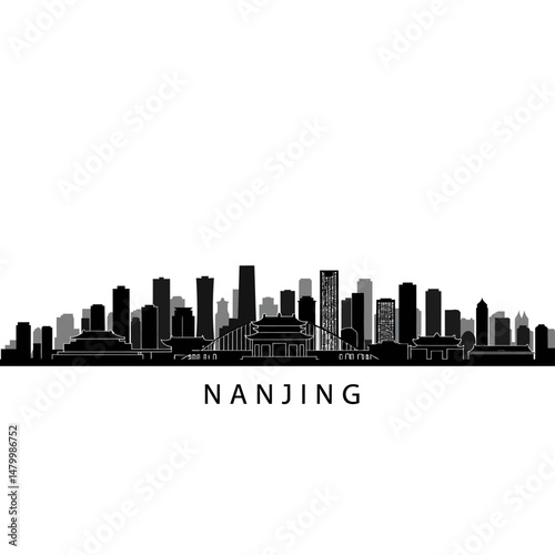 © godsfavoritearts, Naklejka premium Nanjing Skyline Silhouette with China Cityscape.