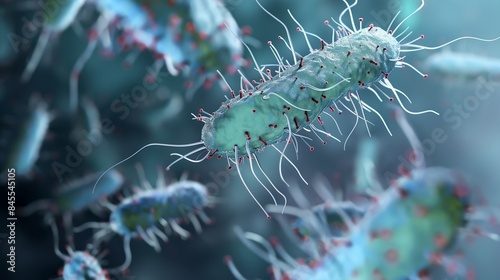 Fototapeta premium Nanorobots attack bacteria in cells. Biological robots are introduced into...