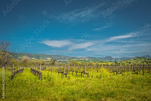 Fototapeta premium Napa Valley Autumn Vineyards, Mountains, Sunset