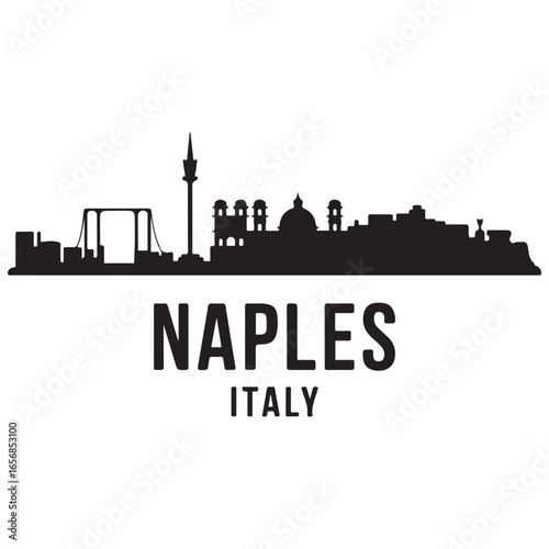 © Nargis, Obraz premium Naples skyline horizontal banner. Naples, Italy. Vector template for your design. Vector black silhouette. with white background