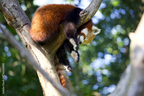 Obraz premium Napping. Red panda on tree branch.