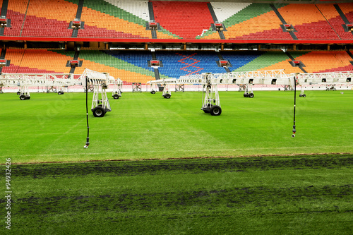 © Zarya Maxim, Obraz premium Napraw boiska piłkarskie, stadion piłkarski bez widzów