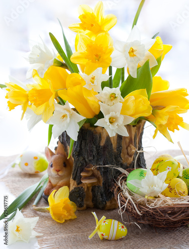 © Svetlana Kolpakova, Fototapeta premium Narcissus and tulips for Easter
